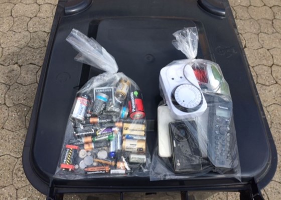 - Saml små batterier i klare poser, så de ikke blandes sammen med det andet affald