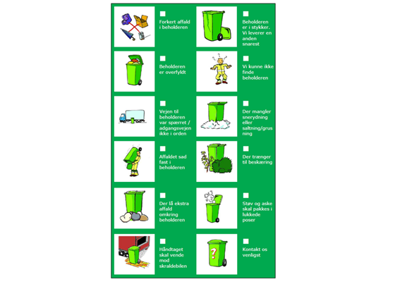 Hvis du skal gøre noget anderledes til næste tømning, afleverer skraldemanden en flyer på din skraldespand eller i din postkasse. Vejen og fortovet er skraldemandens arbejdsplads, og derfor gælder det f.eks. at:
