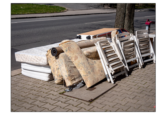 - Storskraldet skal sættes ud til vejkanten ved offentlig vej.