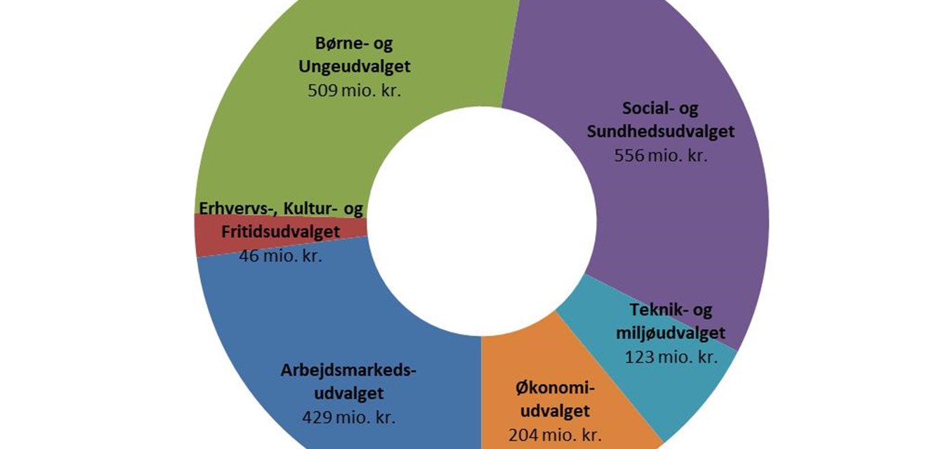Fordelingen af de samlede udgifter mellem udvalgene fremgår af nedenstående diagram.