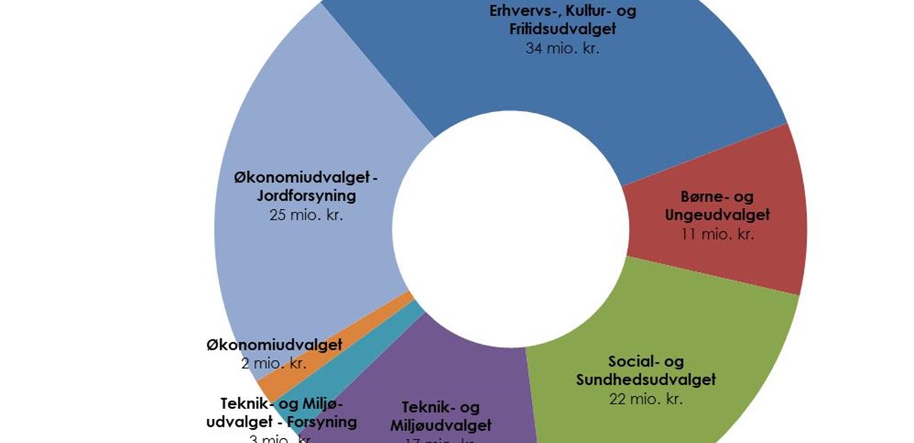 Fordeling af anlægsbudgettet på 111 millioner kroner i 2020 mellem udvalgene fremgår af nedenstående diagram.