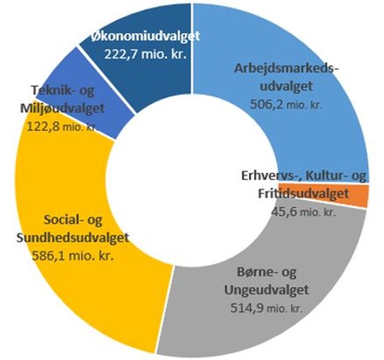 Fordelingen af de samlede udgifter mellem udvalgene fremgår af diagrammet til højre for teksten.