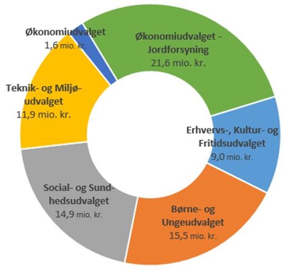 Fordeling af anlægsbudgettet på 75 millioner kroner i 2021 mellem udvalgene fremgår af diagrammet til højre.