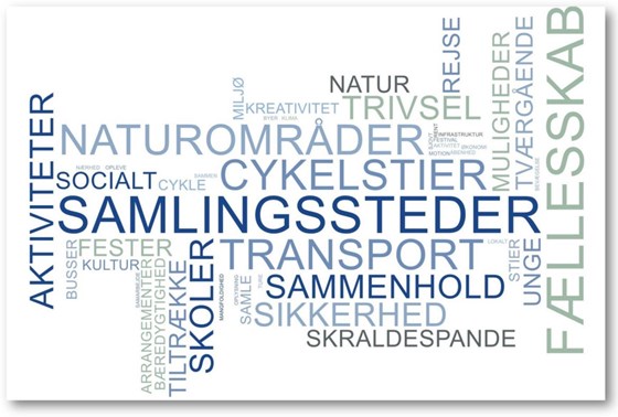 Ordskyen indeholder alle de ord, som borgere, foreninger og erhvervsliv har brugt til at beskrive drømmene for fremtidens Nordfyn.