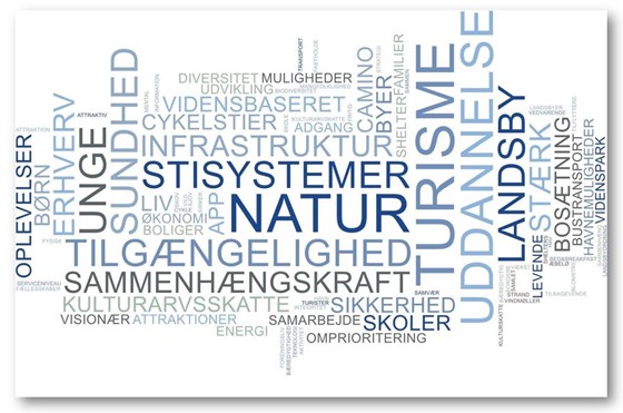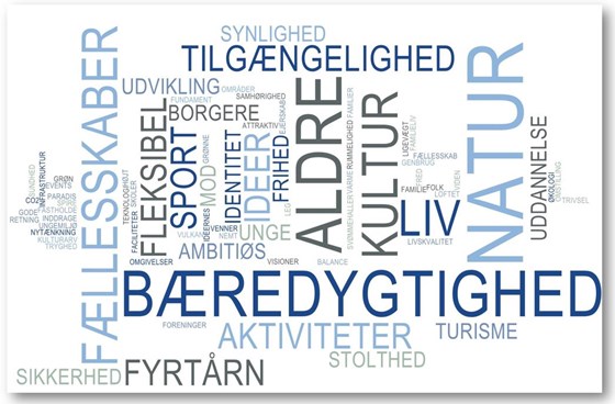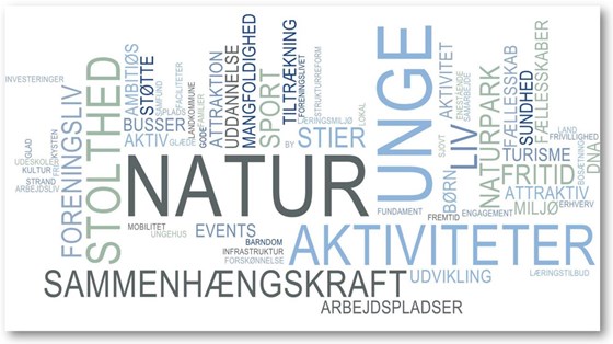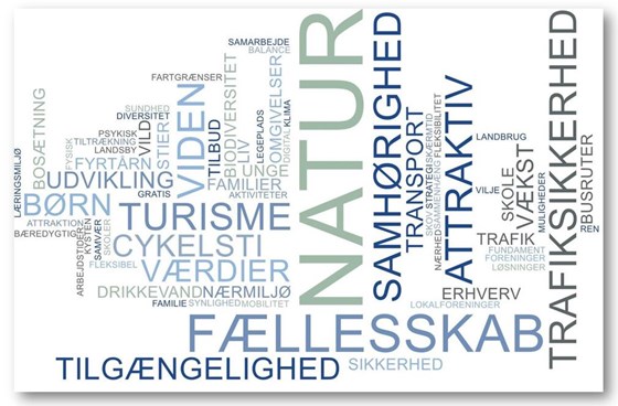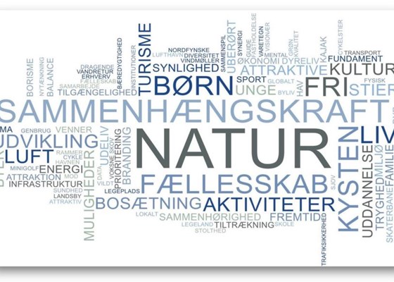 Ordskyen indeholder alle de ord, som borgere, foreninger og erhvervsliv har brugt til at beskrive drømmene for fremtidens Nordfyn.